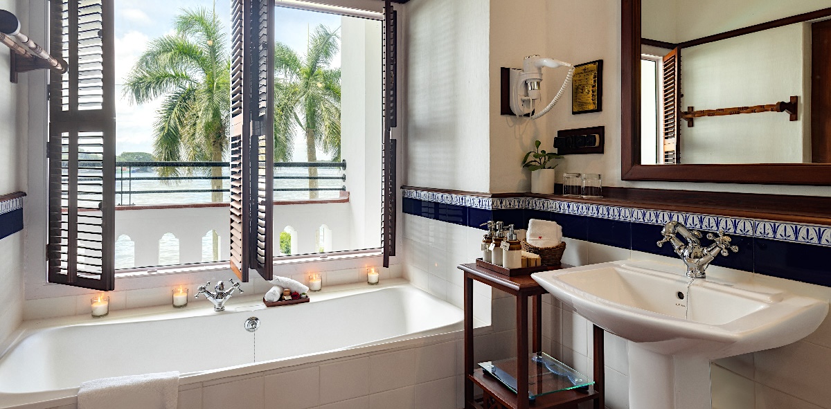 Overlooking the bustling harbour where Kochi’s iconic fishing boats glide past at sunset, Brunton Boatyard is a beautifully restored heritage hotel that reflects centuries of Portuguese, Dutch and British influence on Kerala’s coastline. Built on the site of a former Victorian boatyard, it combines period architectural touches – high wooden ceilings, arched doorways and four-poster beds – with panoramic waterfront views that capture Fort Kochi at its most atmospheric.