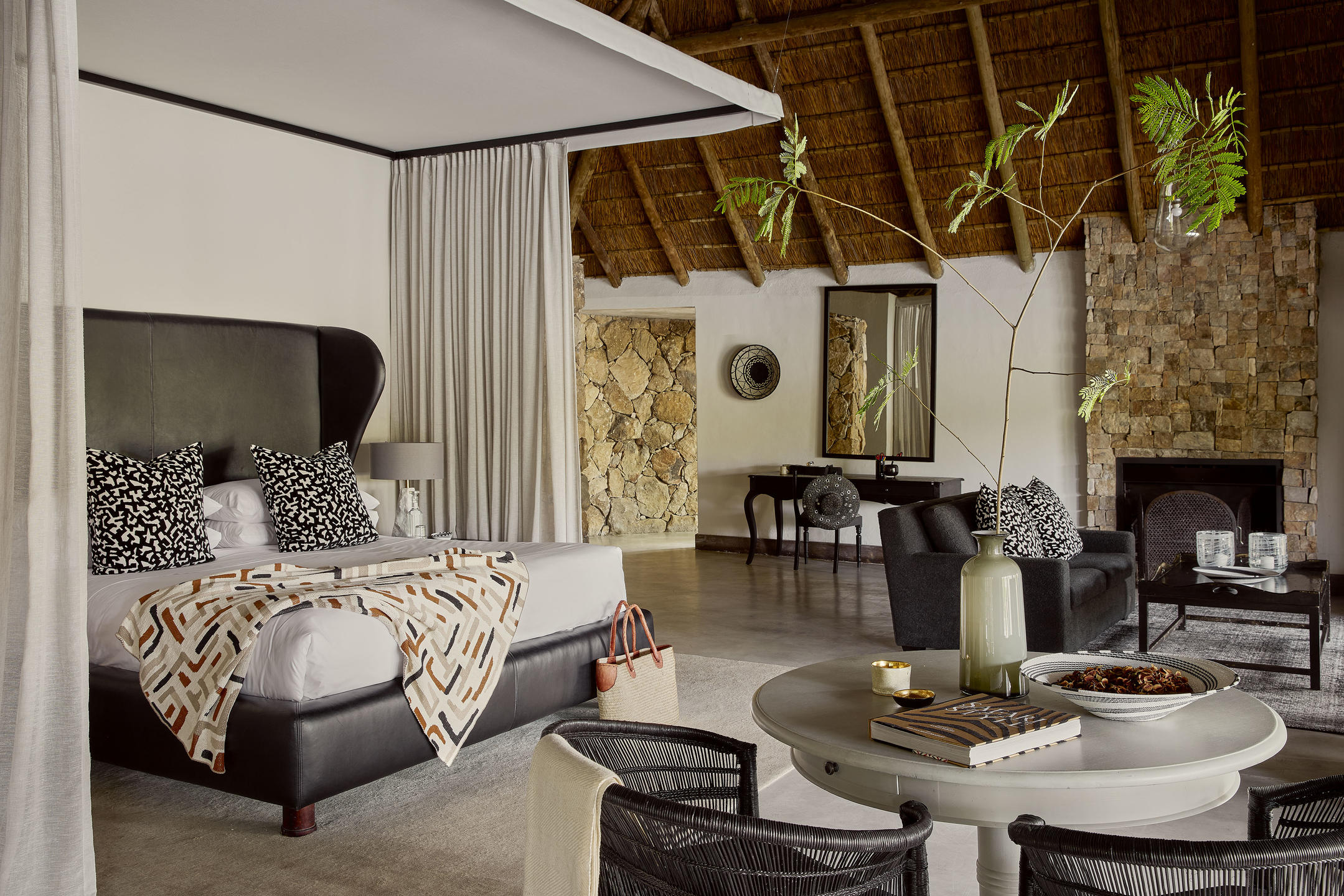 Six individually styled luxury suites, ranging from 130 to 180 m², offer private plunge pools, oversized outdoor decks, and expansive views of the surrounding bush. The Charlsy Suite, ideal for families, features two inter-leading bedrooms and a shared deck and pool. For complete exclusivity, Chitwa House is a private two-bedroom villa with its own chef, butler, guide, and safari vehicle – perfect for tailored group stays.