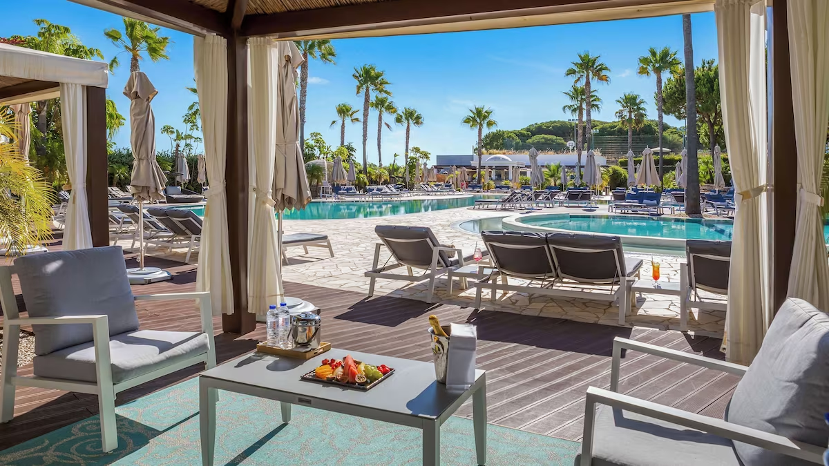 Inside, 154 rooms and suites offer private balconies, marble bathrooms, and smart design details that pair crisp modernity with southern Portuguese charm. The atmosphere is one of relaxed elegance, where guests can unwind at the outdoor infinity pool, indulge in award-winning cuisine, or enjoy tailored wellness treatments at the expansive spa. Families are equally well catered for with a supervised kids’ club, child-friendly menus, and thoughtful amenities throughout.
