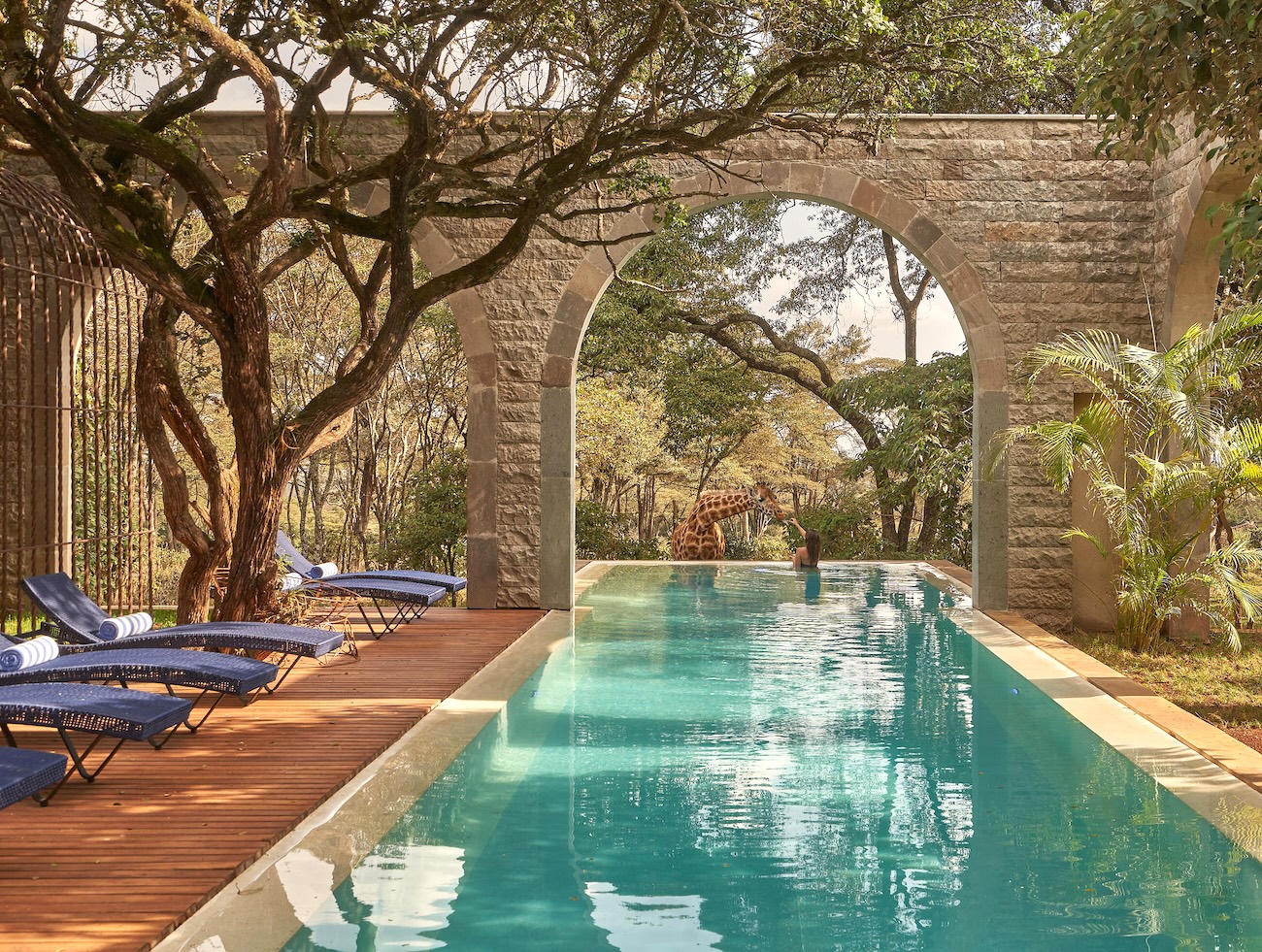 Built in 1932 as a Scottish-style hunting lodge, this historic manor sits within 120 acres of forest outside Nairobi and doubles as a working giraffe sanctuary. Most famous for its resident Rothschild giraffes that freely roam and poke their heads through breakfast windows, it has become an iconic conservation-focused boutique property.