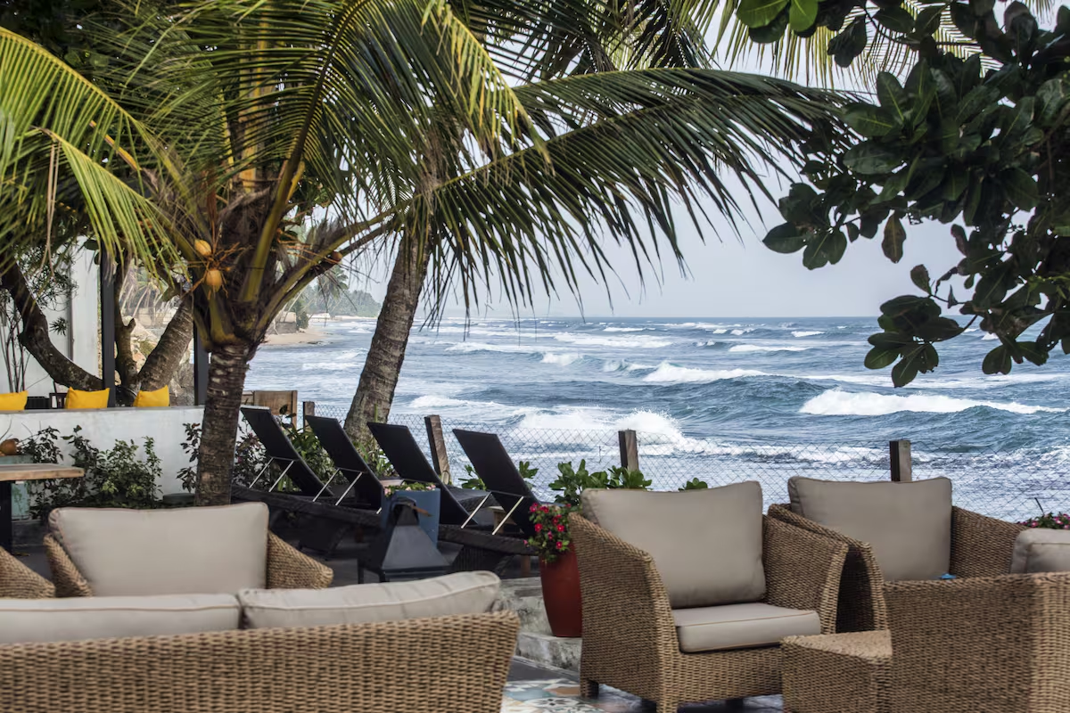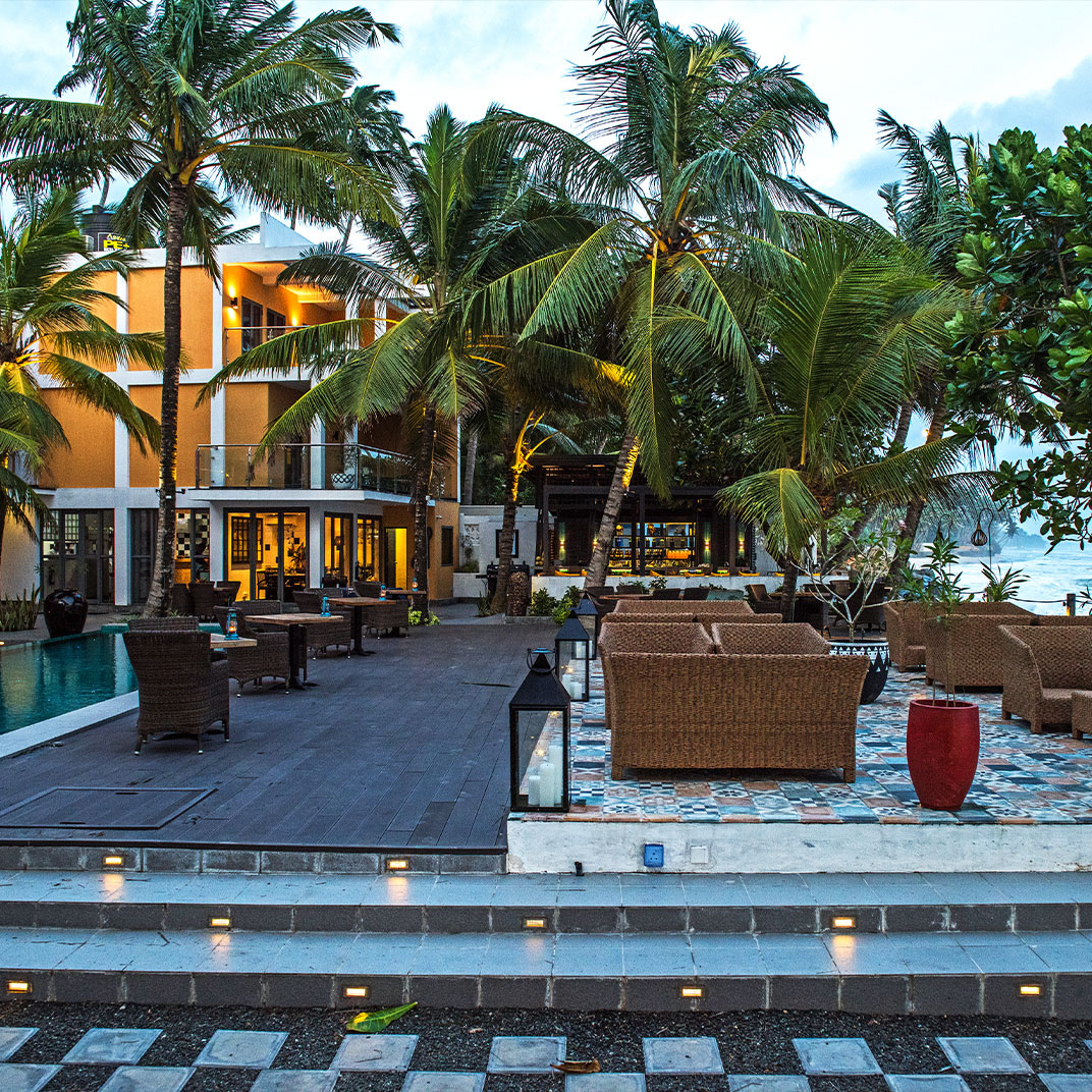 A whimsical tribute to Edward Lear, this chic boutique hideaway sits right at the water’s edge beneath the towering walls of historic Galle Fort. With just 17 suites, its colourful façades – pinks, blues and pastels – circle a shady courtyard where sculptural gardens, a small pool and ocean views set a bright, intimate scene.