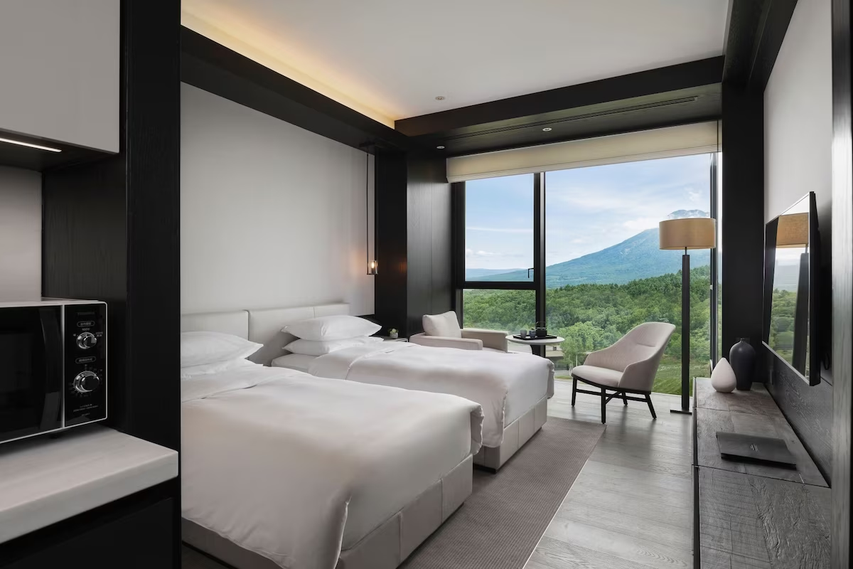 Spacious suites and residences feature floor-to-ceiling views, private onsen baths in selected categories, and stylish living spaces perfect for après-ski relaxation. In winter, guests have direct ski-in/ski-out access to the powder slopes of Hanazono, while summer opens up hiking trails, golf, and mountain biking through Hokkaido’s pristine landscapes.