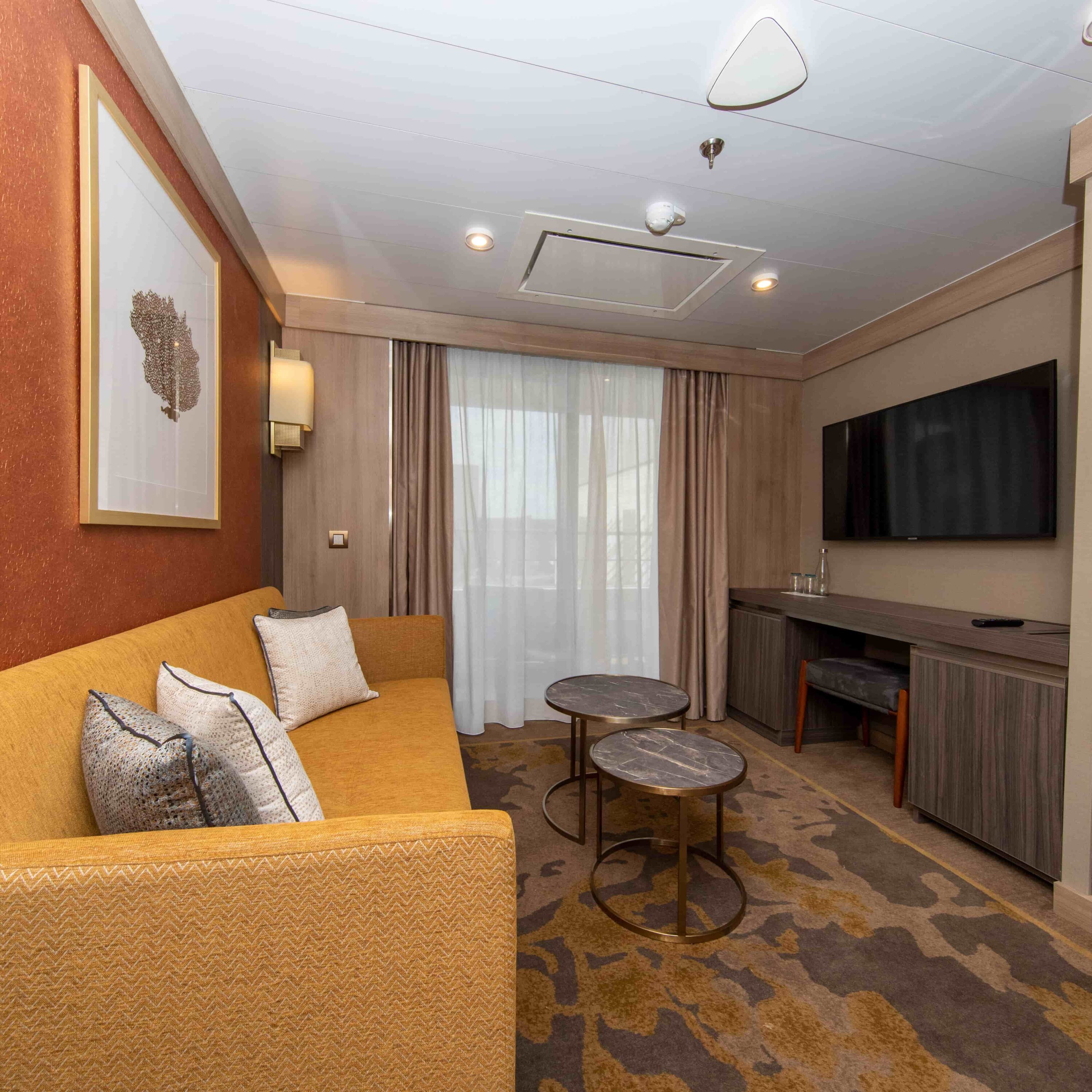 - Carries up to 172 guests in ocean-view suites with many balconies