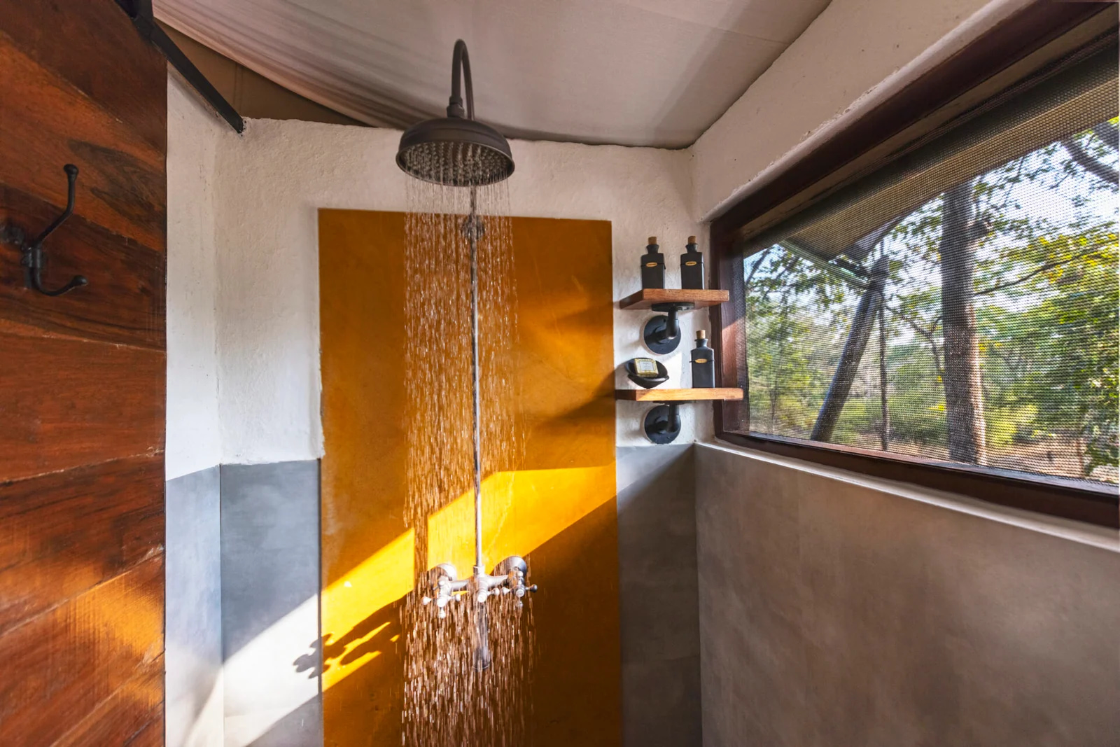 Accommodation includes spacious cottages and luxury tents spread across the forested property, each designed with natural materials and local craftsmanship. Private verandas and outdoor showers immerse guests in the sounds and sights of the jungle.