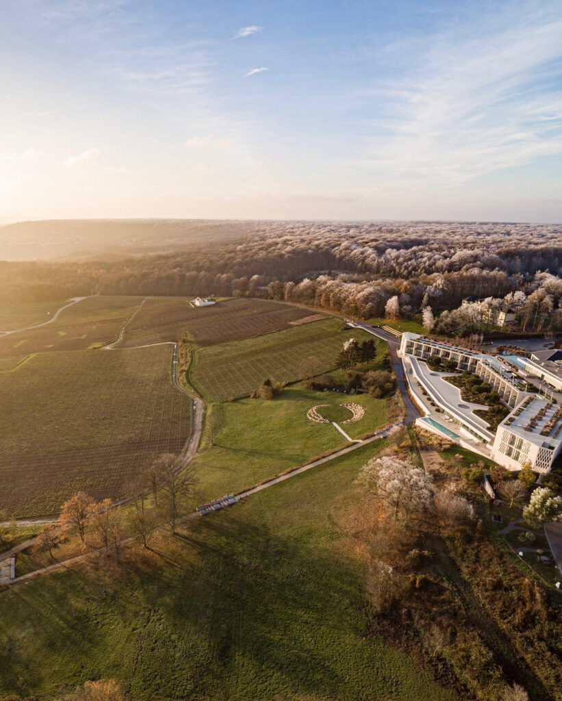 Perched amidst the rolling vineyards of the Champagne region, Royal Champagne Hotel & Spa is a contemporary sanctuary overlooking the historic hills where France’s kings were once crowned. Just a short drive from Épernay and Reims, the property combines striking modern architecture with the timeless charm of its setting, offering sweeping terraces that frame views of vine-covered slopes and the Marne Valley.