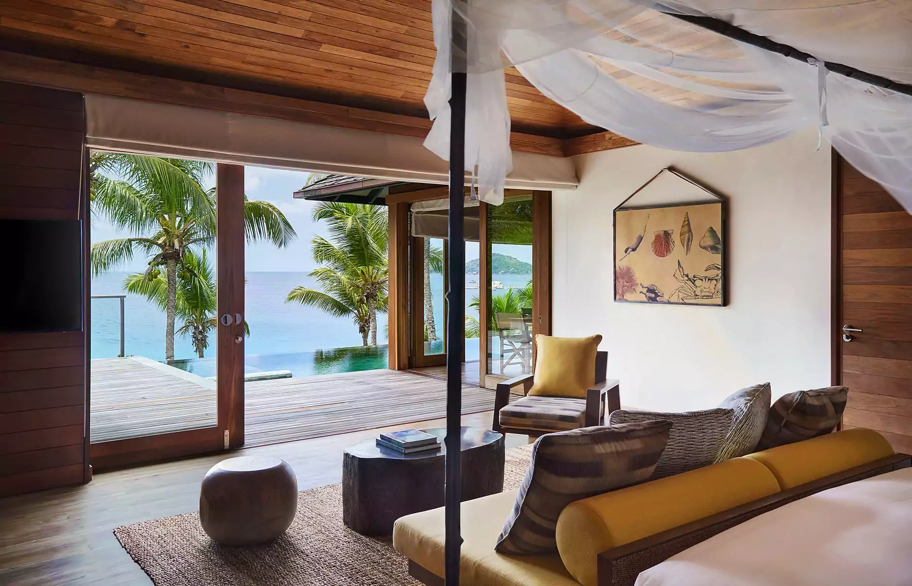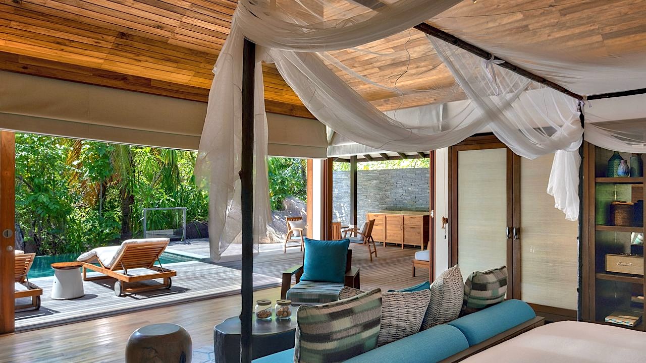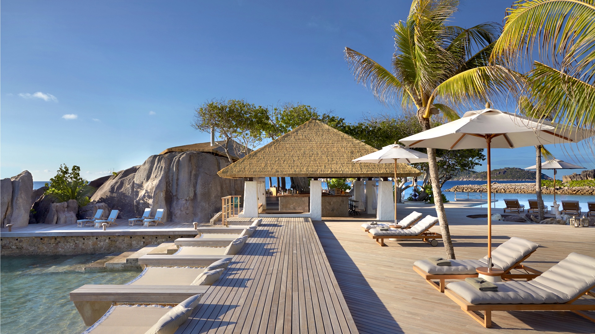 The spa is carved across granite outcrops with five treatment pavilions (Rock, Cave, Nature, Floating, Ocean), a yoga pavilion, sauna and saltwater pool overlooking the horizon. Dining is dispersed across six venues, including an interactive Chef’s Kitchen, ocean-facing grill, hidden rum lounge, wine vault dinners and sustainable garden-focused menus. Activities include reef snorkels, turtle swims, film nights under the stars, cooking workshops, island hopping and coral restoration experiences.