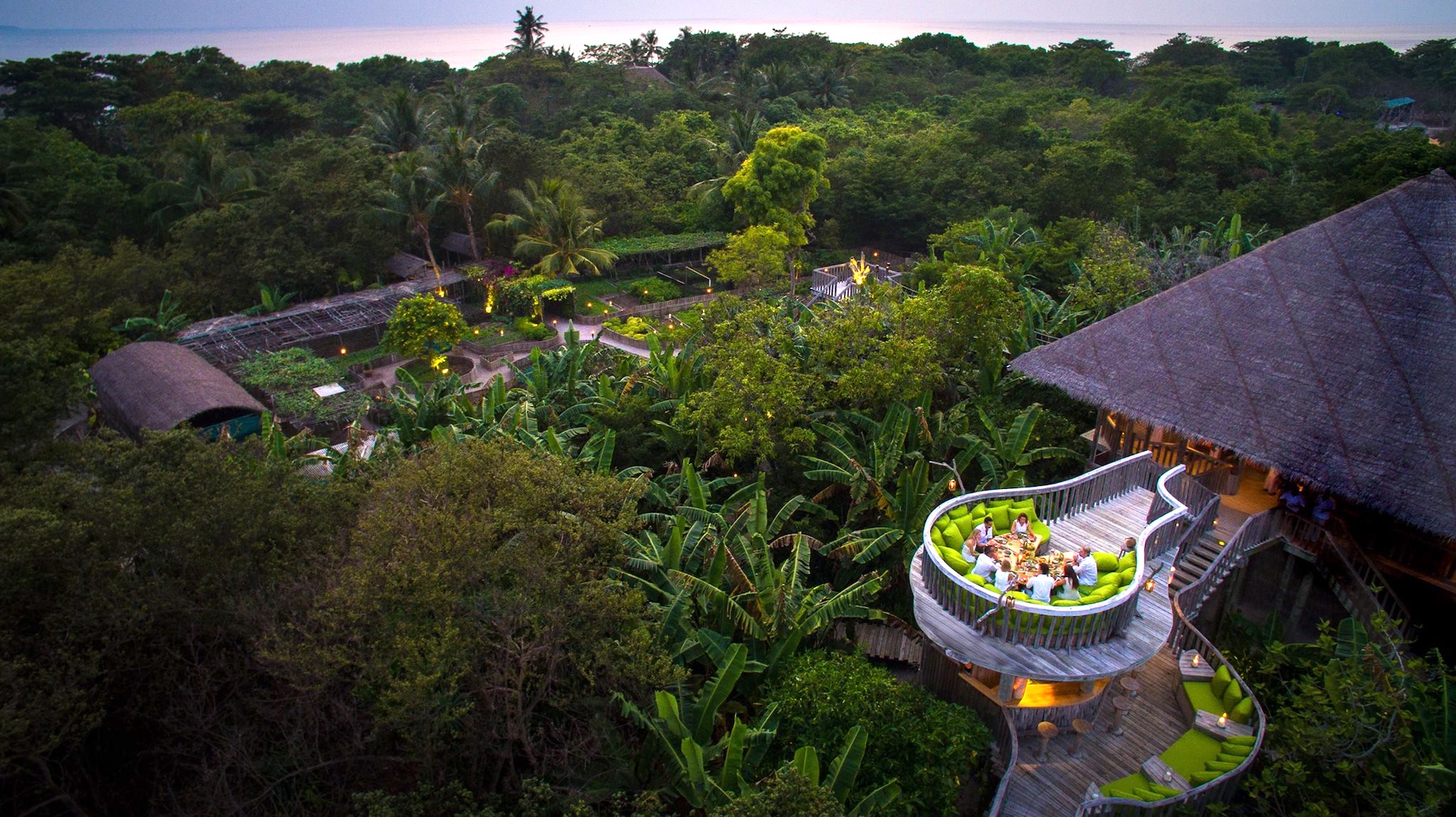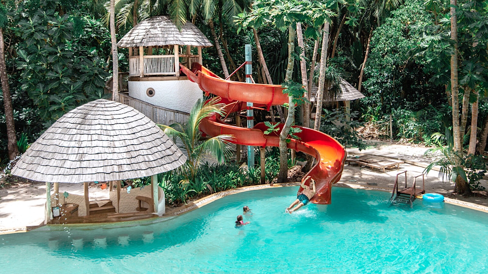 - Private beach and jungle villas with pools and outdoor bathrooms