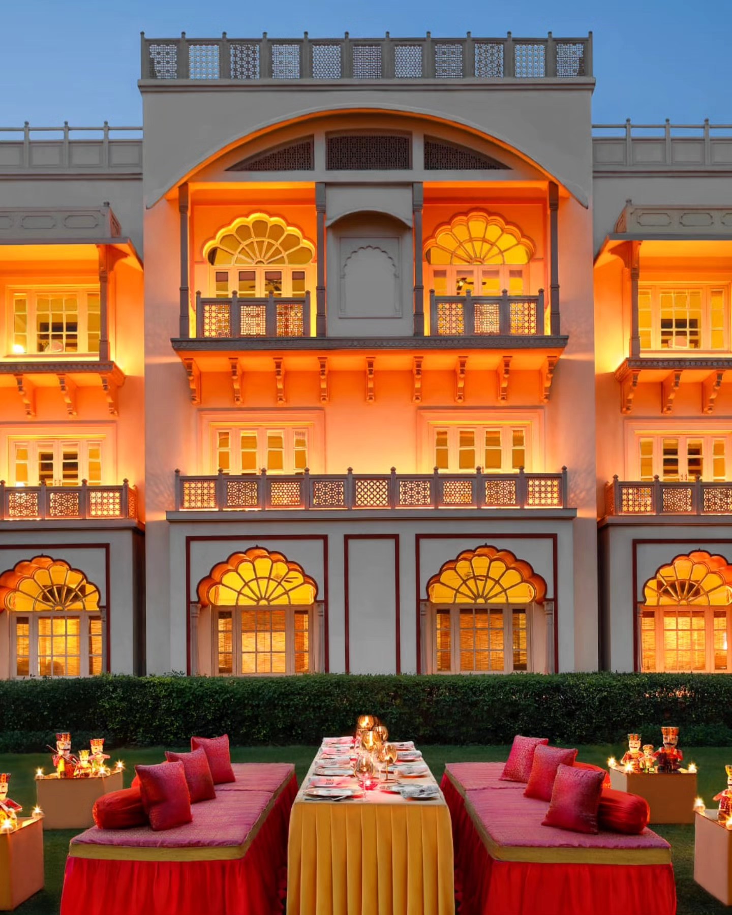 - Elegant Mughal-inspired architecture with jali screens, domes and courtyards