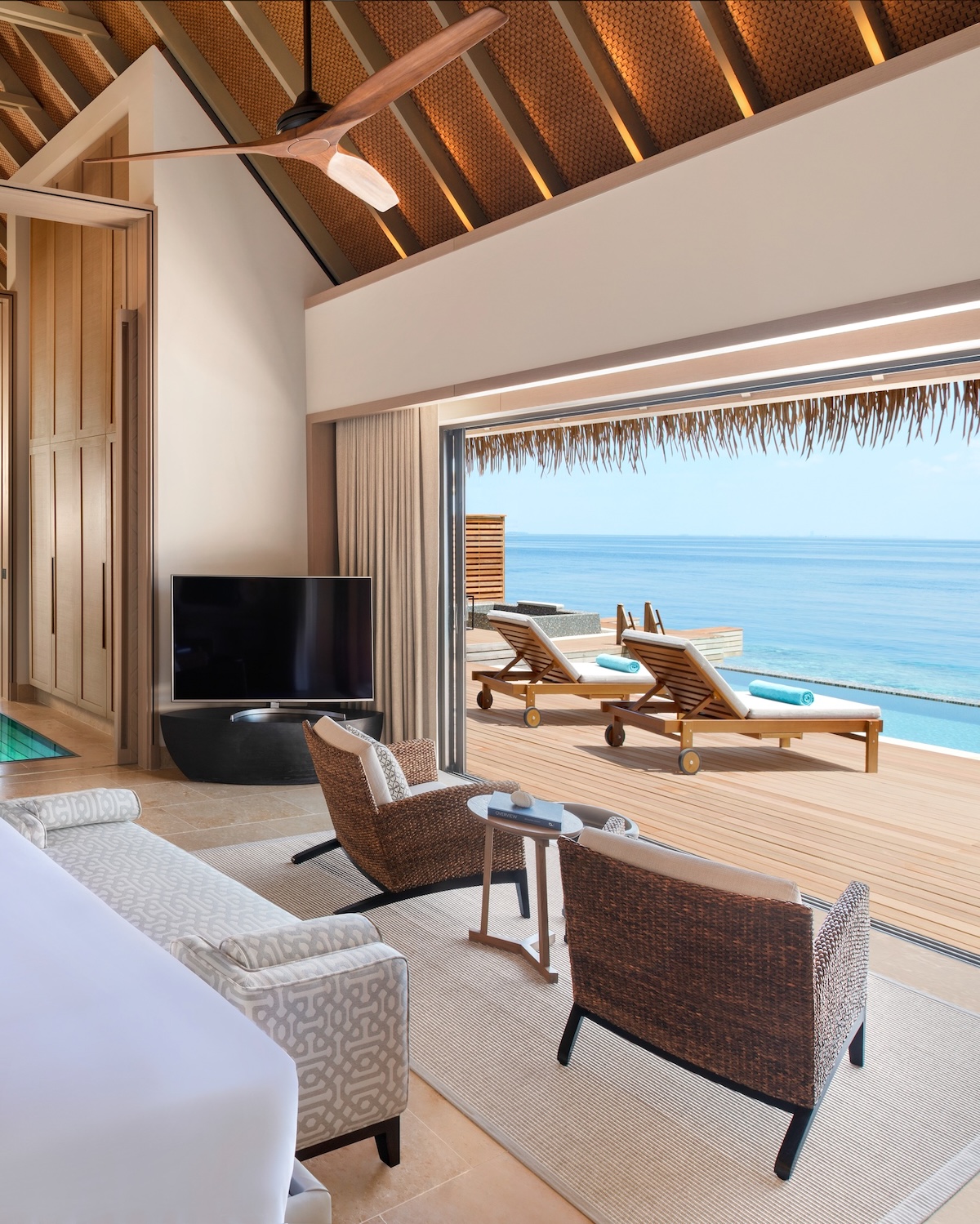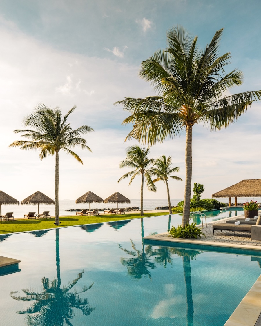 - Expansive beach and overwater villas with private pools
