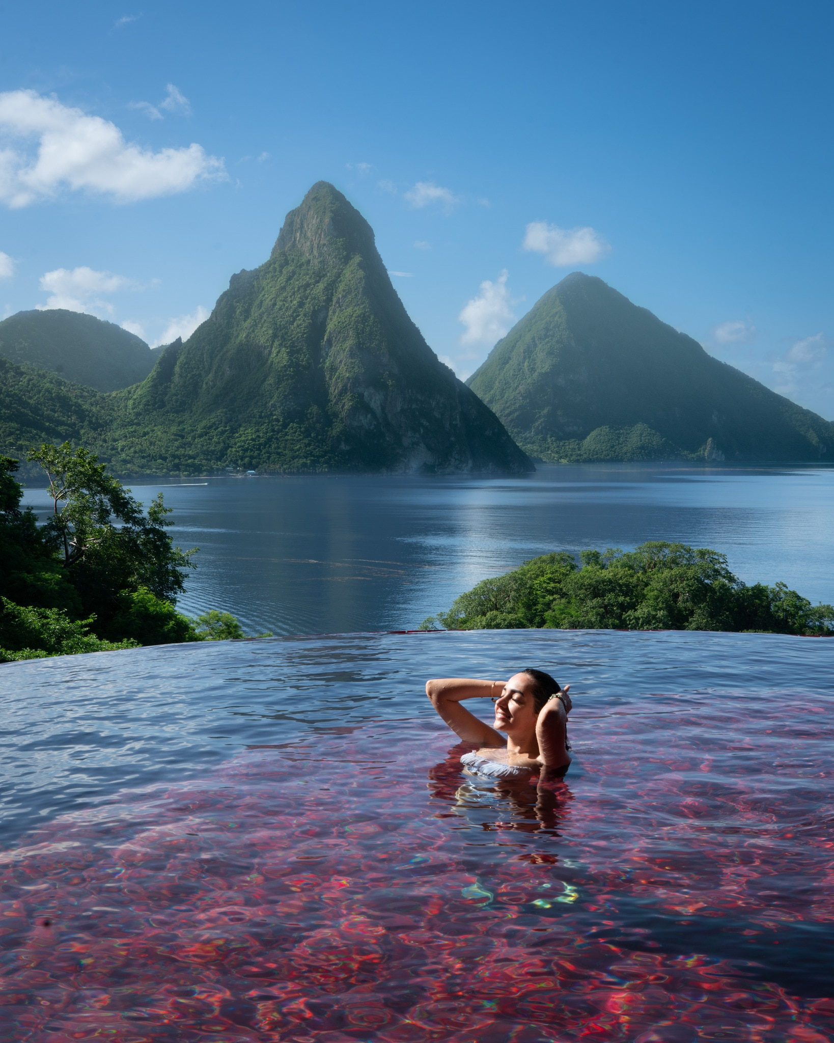 Set high above Anse Chastanet on a dramatic hillside, Jade Mountain is one of the Caribbean’s most distinctive architectural feats. Designed by visionary architect Nick Troubetzkoy, each open-air sanctuary has just three enclosed walls – the fourth side opens completely to panoramic views of the Pitons and sea.