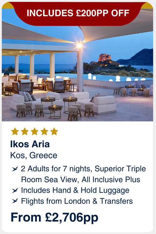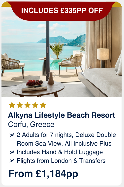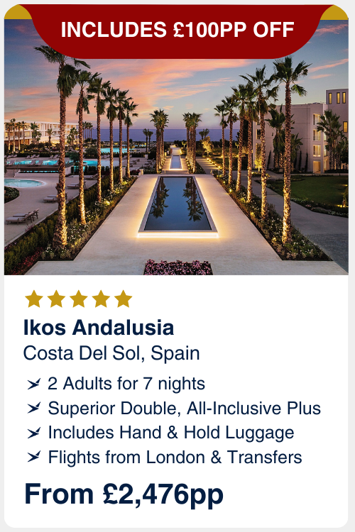 Secure your Summer 2026 escape with our low-deposit luxury packages across Greece, Spain, Italy and beyond. Each offer includes flights, luggage, private transfers and varying board options for a seamless, great-value holiday.